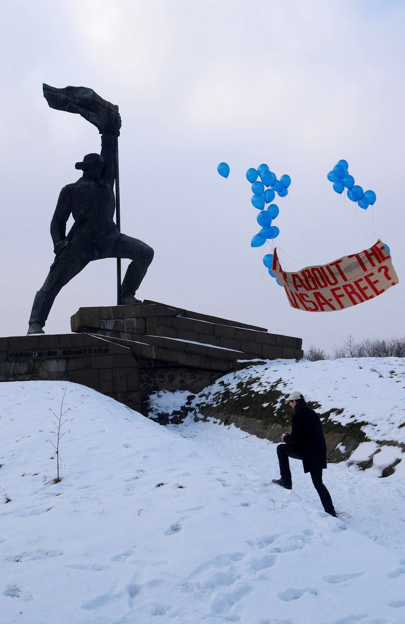 Alina Sokolova, How about the visa-free, 2017, Intervention