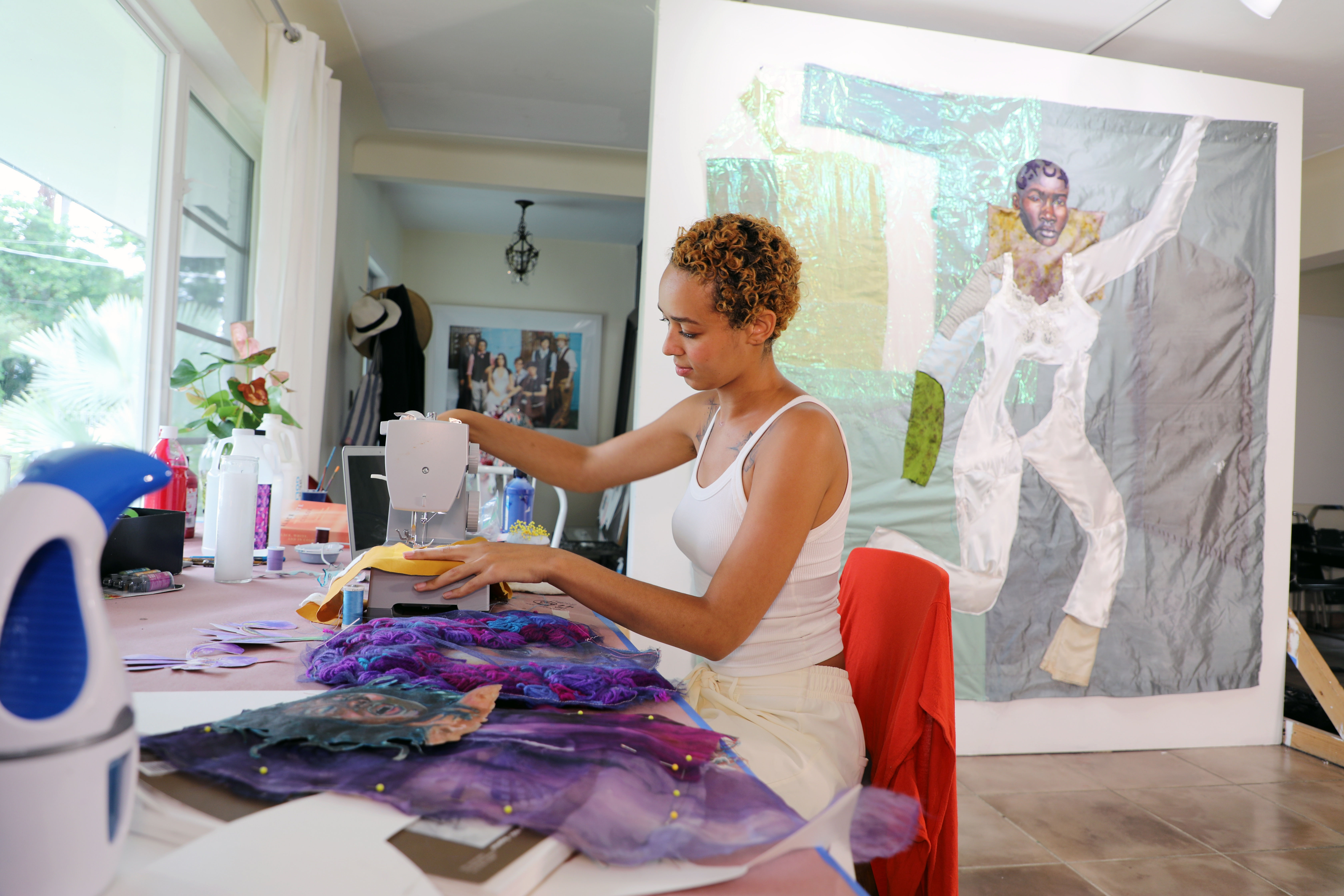 When I was a kid, a couple of my mom’s friends were painters and they kind of guided me. And then when it came to sewing and really figuring out painting and drawing – it was just me spending a lot of time by myself, just doing it. But then when I got to Yale, I was exposed to this class on 20th century African American poetry, and I was taught by Elizabeth Alexander who is an amazing poet. I feel so blessed to have caught her while she was there. That class led me to do African American Studies for my Bachelor’s degree. I had never been exposed to art the way that I was in that program – specifically with Professor Alexander – but also with other professors. Just the way that they approach arts and culture in general. We would analyze poetry, music videos, and fine art like Lorna Simpson – we were looking at this whole array of Black culture. I had never looked at art in that way before. Observing all these modes of creation – it was like tapping into a new language. That was awesome!