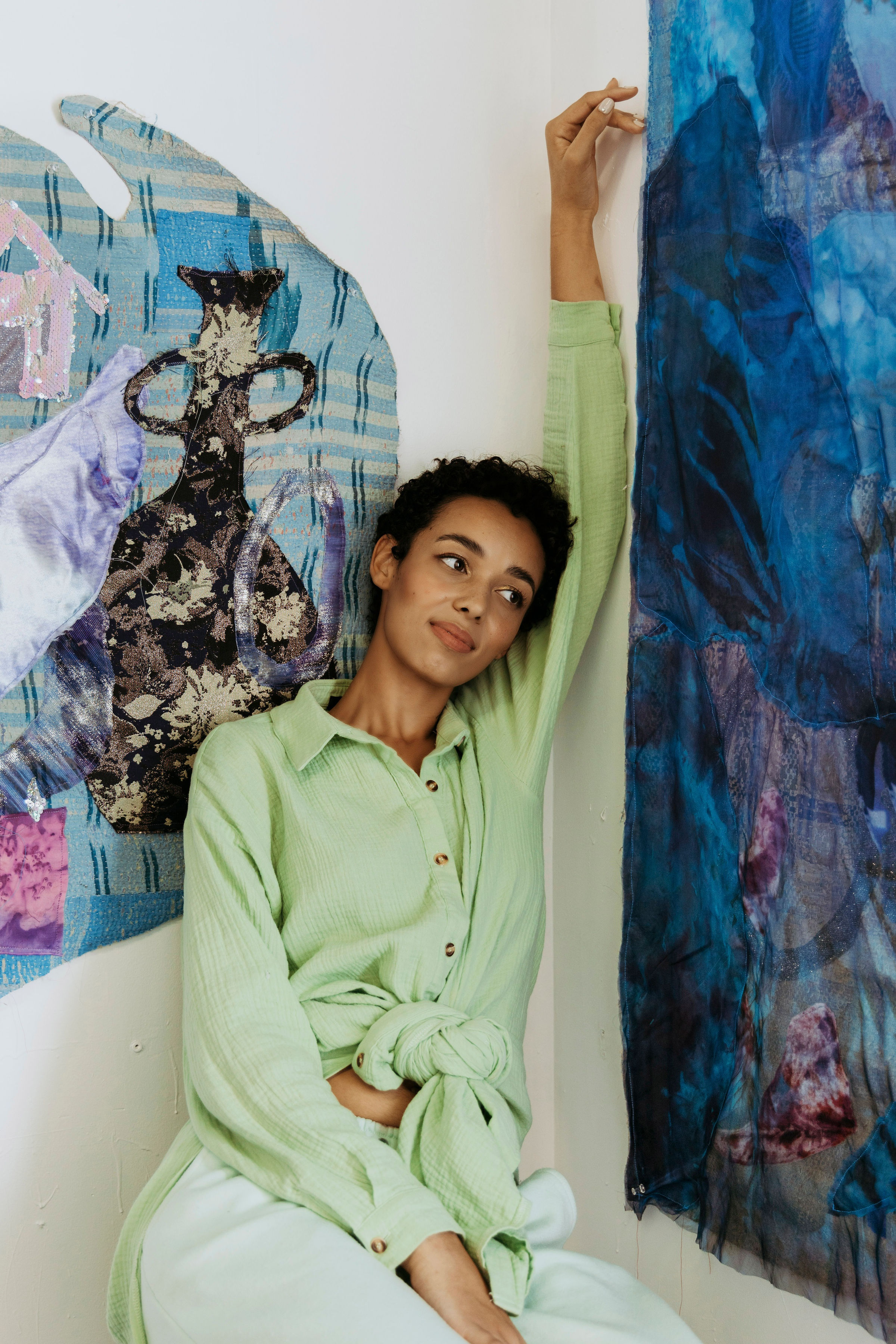 When I was a kid, I had a dream: I wanted to be either a fashion designer or an interior designer. I was really excited about textures, space, and the environments we live in, and the textures and the colors that we surround ourselves with. And I would even try to make clothes. And some of them were actually pretty good. I didn’t like making clothes because it is very technical, for example the patternmaking process. There were always a lot of technical aspects that I did not know how to do, and I don’t like to follow rules when I’m being creative. I think this allowed me to flourish in being an artist, because I can still work with fabric and sewing and do all the things that I love, but I can make my own rules. In high school I was really focused on painting. But then when I went to London and was painting again, there was something about it where I felt stuck, I tried to remember what brought me joy and passion as a kid, and that is what made me bring sewing back into my work.