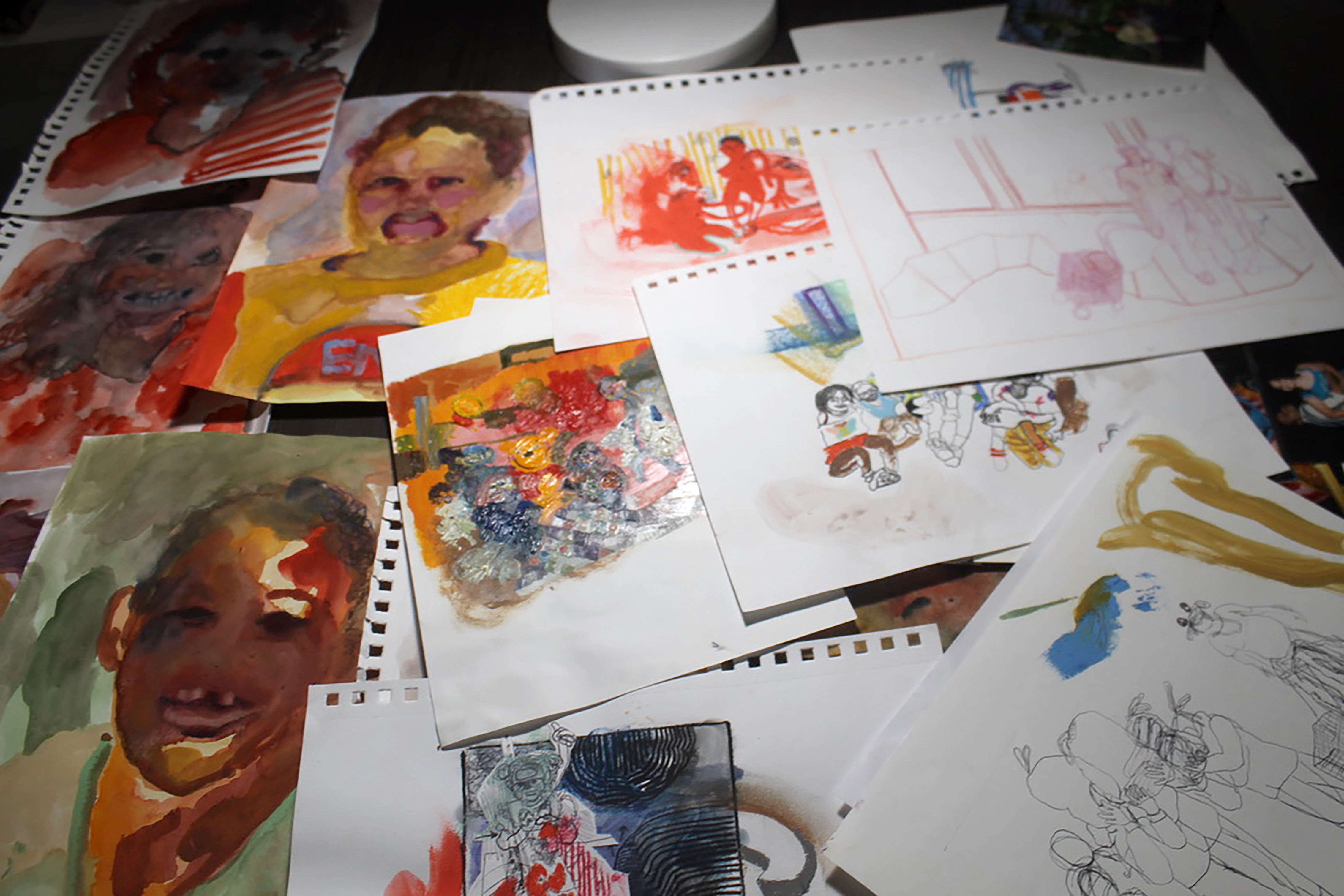 My siblings and I were raised by a single father; I think having a front seat to witnessing an important figure in my life struggle and finding any means to provide for us on his own sparked a yearning in me to depict figures that are endlessly trying to find their role in the world within the layers of their environments. Just like our memories, a photograph can have various ways in which it can be perceived. I use a lot of old photographs or recent ones on my phone of family or friend; these photographs and the memories within them are dissected and used to recreate new narratives.