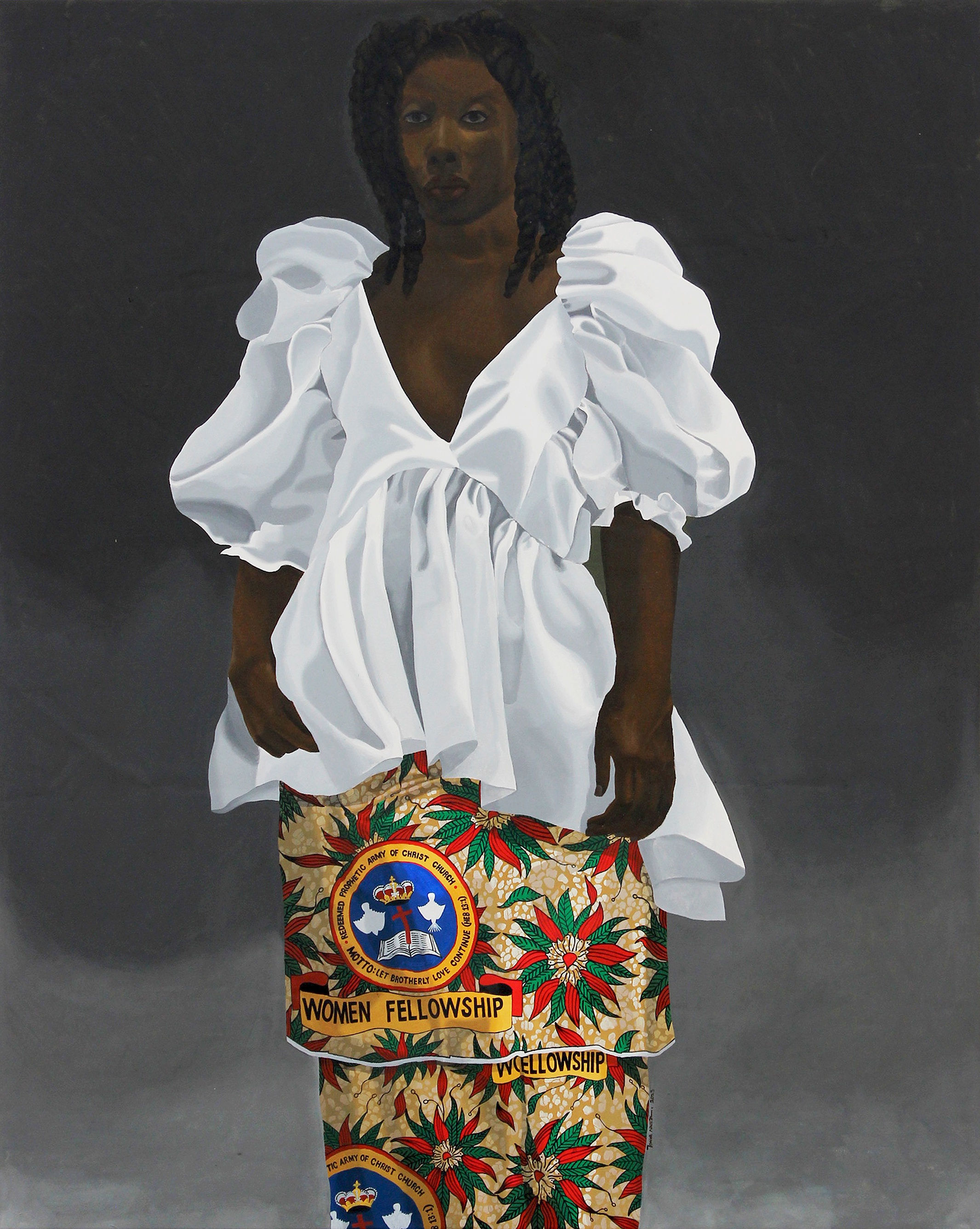 Moving back to fabrics that play a significant role in your works. When you depict ankara , what meaning does this fabric have for you? (Editors’ note: ankara are Dutch wax fabrics decorated with African motifs popular in Nigeria)